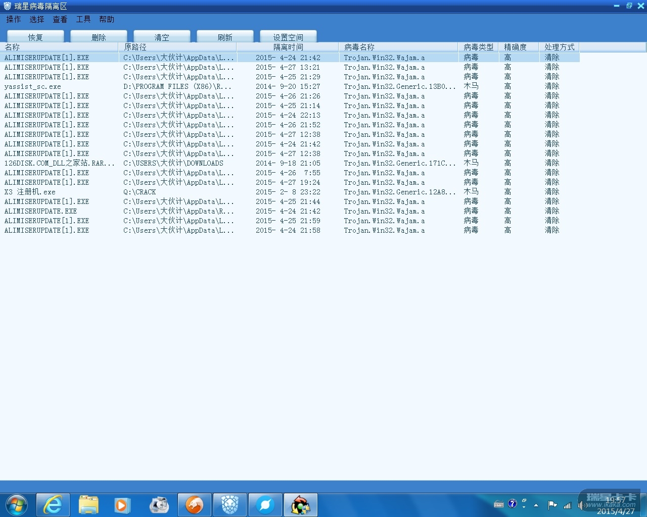 近些天电脑上的瑞星反复杀ALIMISERUPDATE.EXE,每次都隔离掉了。但过一会儿,却又出来了隔离掉这个文件的提示,意味着根本没有杀干净,而且似乎总也杀不干净这个文件,一遍一遍没完没了,怎么办?见附图