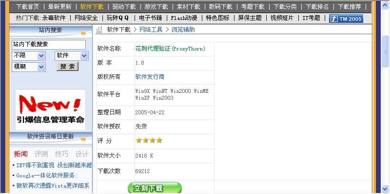 花刺代理验证(ProxyThorn,免费软件) 是为方便大家使用代理浏览国外网站,为提高大众网用户浏览科研教育网的速度,参照"代理之狐"设计的。它具备了"代理之狐"和"代理猎手"所有主要功能,但使用更方便,验证结果更可靠。智能程度极高,对用户体贴入微,配有10多页详细的说明书,图文并茂。尤其适合科研教育网用户使用。