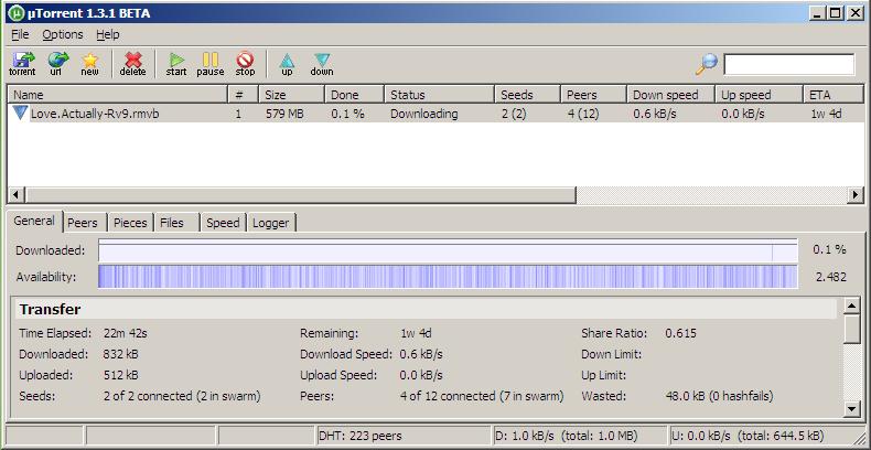 µTorrent(uTorrent) 1.3.1 Beta Build 380