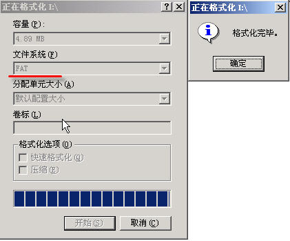 不知什么原因,我有一个很小的硬盘分区,可以格式化成FAT和NTFS,如图: