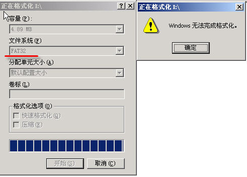但如果想格式化成FAT32时却报错。如图。这是怎么回事呢?