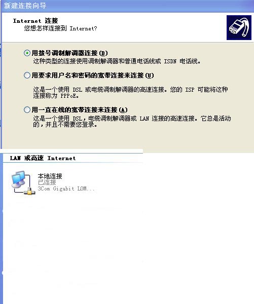 我的电脑不能上网了,点桌面上的“我的连接”按钮没有任何反映,进入“系统属性”看我的调制解调器驱动程序正常。但进入网络连接窗口看“新建连接向导”发现只有“用一直在线的宽带连接来连接”这个选项,上两项“用拨号调制解调器连接”和“用要求用户名和密码的宽带连接来连接”都是灰白不能操作的状态,而且网络连接窗口只有“LAN或高速Internet”这个操作,原本通过PPPOE设置的宽带上网图标也没有了。这是什么原因啊,在不重做系统的前提下我该怎么解决??