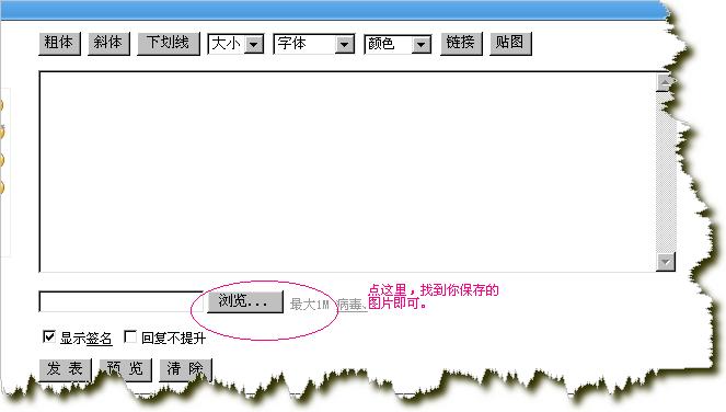 我们在论坛中常用的方法是文件上传来贴图,那么如何运用标准模式下贴图及连接哪?请指教。