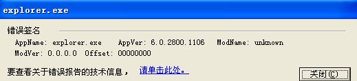 AppName: explorer.exe AppVer: 6.0.2800.1106 ModName: unknown