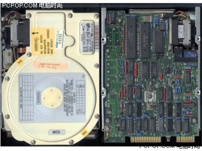 从硬盘电路板密集的电子元件(这是由于芯片的集成度不高而导致的)我们能看出,当时的制造工艺和现在相比简直就是一个地上一个天上。