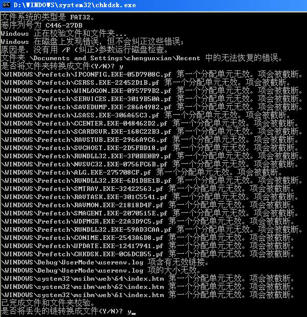 运行Chkdsk时,右下角总会弹出说什么文件丢失