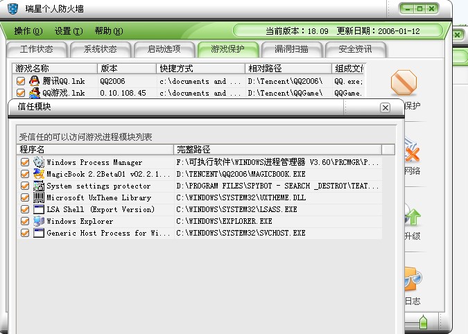 想问一下,我知道木马墙集成在瑞星防火墙的游戏保护里,例如qq,我用的是珊瑚版的qq,在文件夹中,有原版的qq程序和珊瑚虫qq程序两个exe文件,我是把原版的qq的程序添加到保护中,还是把珊瑚虫版的qq程序添加到保护中呢?谢谢!