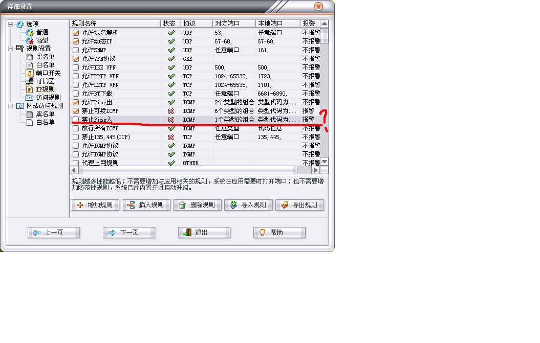 瑞星防火墙的自定义规则1.26版为什么没有禁止ping项?