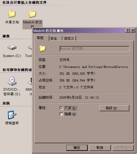 可是我的指向的是C:\Documents and Settings\NetworkService\My Documents
