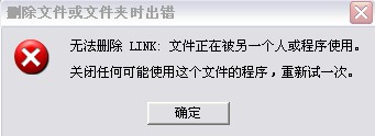 上学期因为我们微机原理课程设计的原因,我在机子的E盘COPY了一个LINK.EXE用于汇编语言的设计。它只是一个EXE文件,直接调用,不用安装。现在不知道怎么了,怎么删也删不掉。每次删除时提示如图所示错误,而我同学的机子上,却没有这种现象。