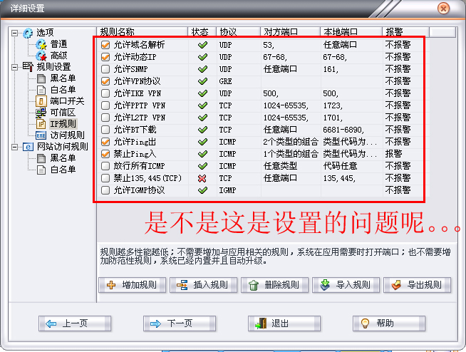 2006瑞星防火墙不让我共享INTERNET。。上网。。我退掉它就可以。。