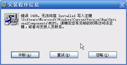 后面还有一大堆软件需要安装,还不知道还有多少软件无法安装。估计好象是新装的系统有什么问题。顺便说明一下:XP sp2龙卷风版是第一次使用,但那XP sp2上海政府版却是一直在用,在自己和别人的机器上装过无数次,从没遇到过这类问题。以上所有不能安装的软件都是以前安装过N次的,也不存在文件损坏的问题。新装的机器也不存在病毒的问题。所有安装的软件都是经过千百次查毒,不存在安装包带毒的问题。C区是用FAT32格式化的,装系统前都完全格式化过。