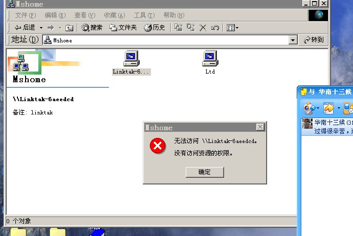 我从WIN98打开WINXP的共享计算机工作组出现的提示:
