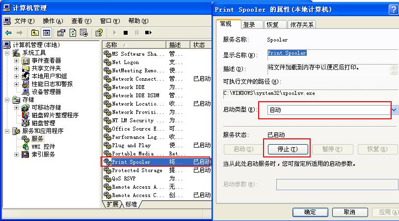 启动打印服务,症状依然。网上查了一下: