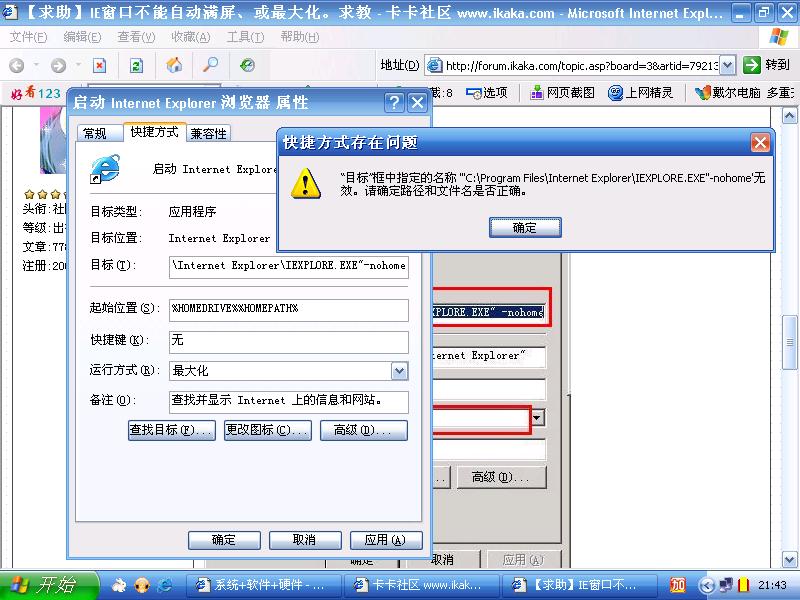 【求助】IE窗口不能自动满屏、或最大化。求教