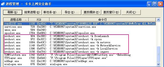 关于svchost的数量问题,偶从来也没有彻底清楚过,更加不知道该怎么样辨别svchost进程中是否有木马~~