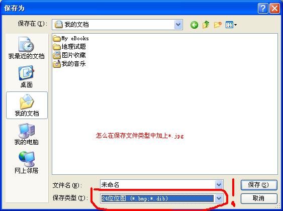 98系统下的画图程序,怎么不能将图片保存为jpg格式呢?请问,如何才能在“另存为”对话框中的“文件类型”中加上这个格式?如图: