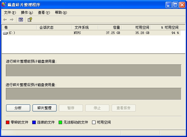 提示:对卷进行碎片整理之前,应该先进行分析,以便了解碎片整理过程大概需要多长时间。