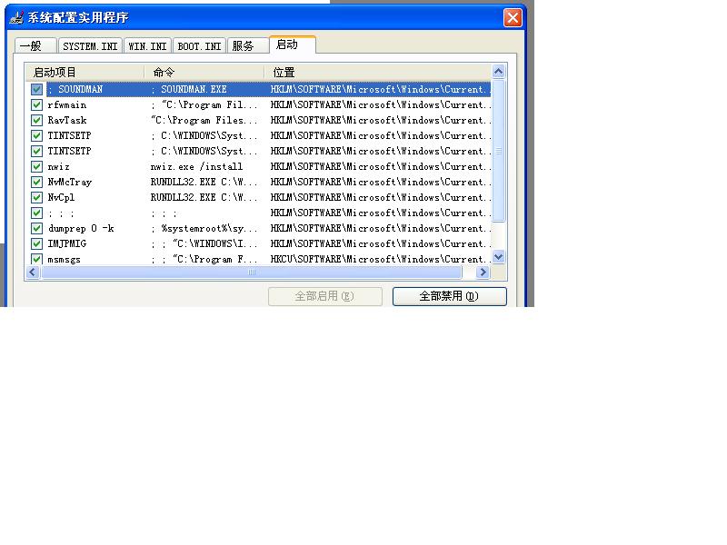 今天看了自已的开机启动项。怎么多了这么多。以前只有几项。试着看了看了。想去掉一些。但对电脑不怎么懂。想让大侠给我指出,要去掉那几样。看看是不是和我想去掉的一样。学习中。谢谢。