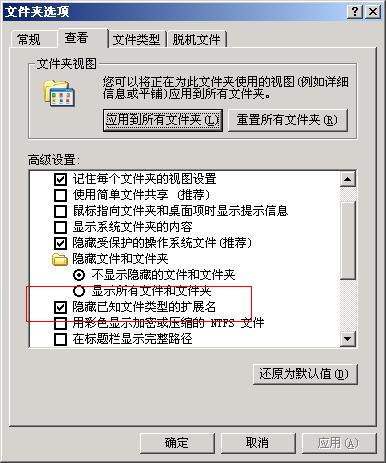 文件夹选项——隐藏已知文件类型的扩展名