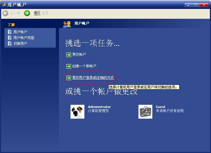 【求助】XP系统怎样让开机时出现登录界面?