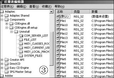 由于Windows的多数软件都使用了动态链接库(DLL),也有一些软件的设计还不太成熟,导致了很多软件被卸载后,经常会在硬盘中留下一些文件夹、*.dll文件、*.hlp文件和注册表键值以及形形色色不知名的小东西,成为名副其实的垃圾,如图3。