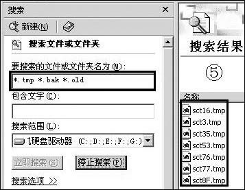 Windows在安装和使用过程中产生的垃圾包括临时文件(如*.tmp、*._mp等)、临时备份文件(如*.bak、*.old、*.syd等)、临时帮助文件(*.gid)、磁盘检查数据文件(*.chk)以及*.dir、*.dmp、*.nch等其他临时文件。你可以通过系统的“查找”功能,将这些“垃圾”从硬盘中找出来删除掉,方法:将这些文件全选后击鼠标右键,选择删除即可,如图5。“C:\Temp”和“C:\WINDOWS\Temp”这两个临时文件夹也是“垃圾”滋生地,里面存放的都是临时文件,可放心地全部删除。