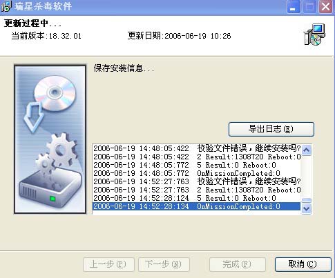 今天我升级瑞星软件,之前一直都可以升级的,刚才我升级到了一半,可能是在线听歌影响电脑吧,我在线听歌的网业突然动弹不了,没有响应了,然后我强制关闭音乐网站按Ctrl+Alt+Delete,那时电脑很慢,瑞星升级到一半也定住了,说没有响应,我也不知道是怎么回事,然后我也把正在升级的瑞星关了,以为关了瑞星重新升级就可以的了,没想到重新开了瑞星升级,就升级不了,还出现了这个框框,请大家帮帮忙吧,看看到底是什么问题了!!谢谢各位了!!
