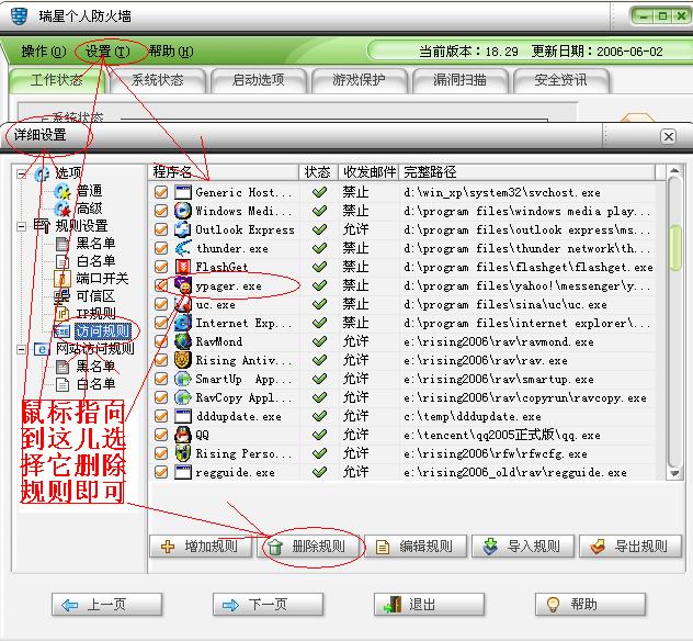 【yangxijie的贴子】今天不小心把一个我经常用的程序被防火墙阻止了,请问怎么能解除阻止?
