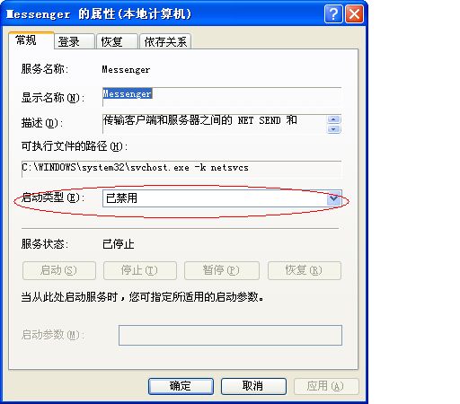 需要注意的是,“Messenger”服务的“启动类型”为“自动”,这表明就算我们关闭“Messenger”服务,下次Windows启动后,该服务也会再次自动加载,解决的方法是双击它,在打开的对话框中将“启动类型”设为“手动”。