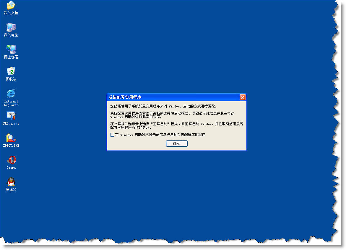 是msconfig禁用某些项目后重启的提示