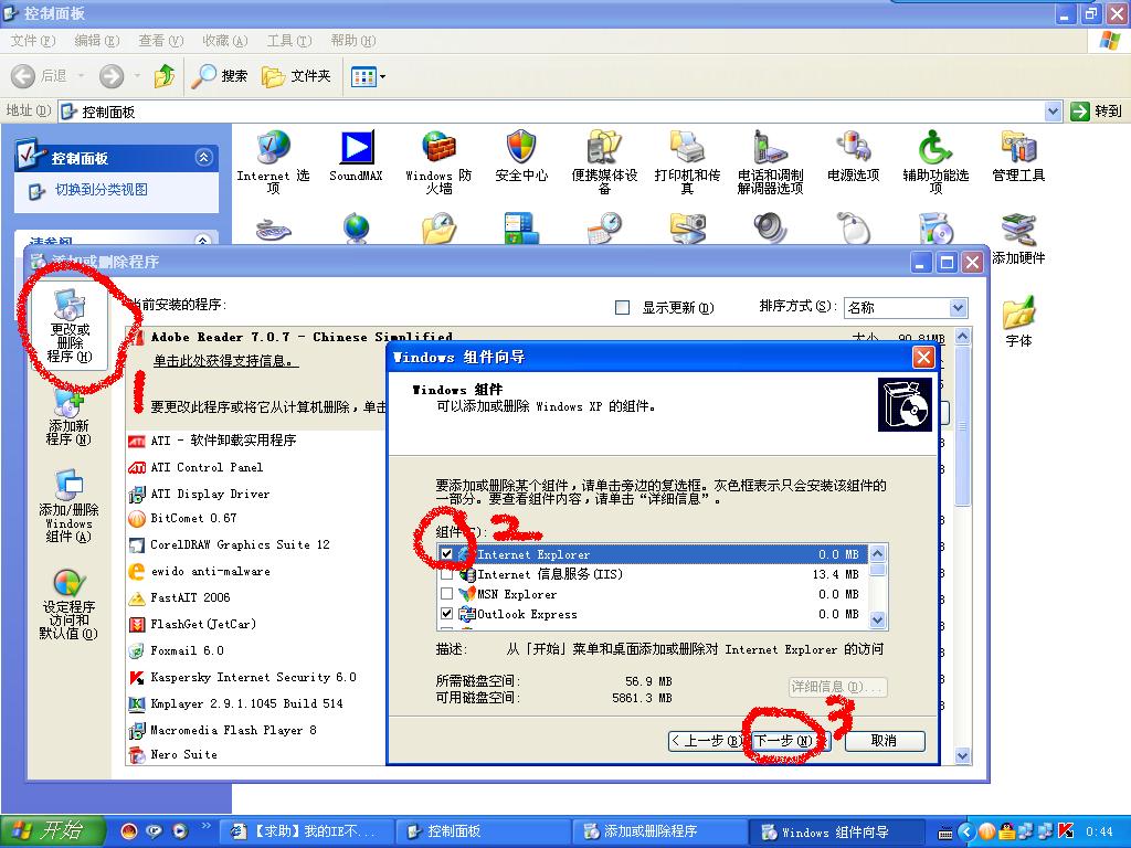 手工卸载:点击 开始--设置--控制面板--添加删除程序--添加删除windows组件--勾选IE(记得要将其他项目中的对勾取消啊)--下一步--。。。