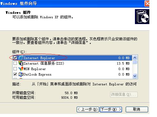 把XP安装CD放入CD驱动器,从“开始”菜单运行下面的命令:rundll32.exe setupapi, InstallHinfSection DefaultInstall 132 %windir%\inf\ie.inf。