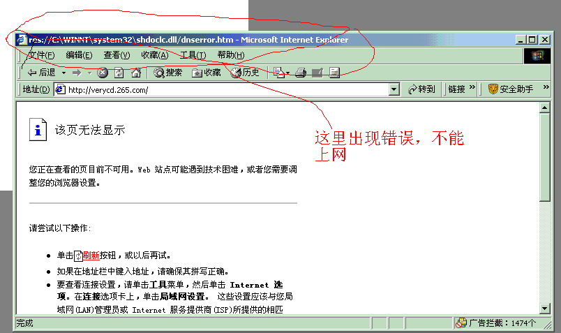 我的办公室电脑不知是删了什么东西(或是病毒破坏),上不了网(但访问网络邻居的其他电脑没问题),我重装系统修复后也一样,搞了几天,好心烦,哪位高手近来帮忙?