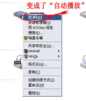 | 引用: | 【流浪詩人的贴子】今天重装了操作系统,其它都正常,有个小问题就是D盘右键菜单的默认操作(双击)不是“打开”,而是“自动播放”,请问如何改回来呢? ……………… |