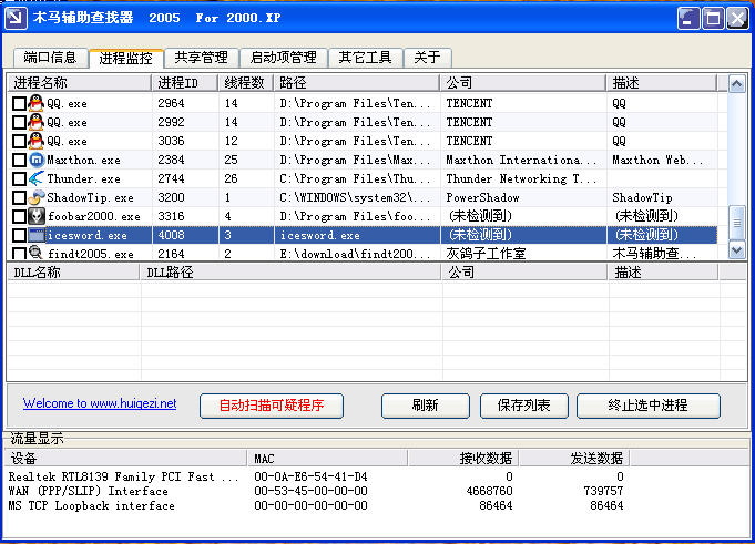 除了IS与SSM的进程无法测出DLL外,其它的都可以