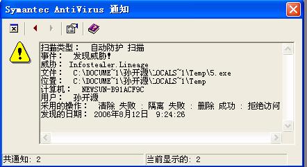 采用的操作:  清除 失败 : 隔离 失败 : 删除 成功 : 拒绝访问