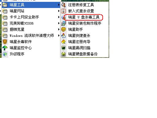 在瑞星工具箱里找到“瑞星U盘杀毒工具”程序用它就可以制作它了,参见下图所示