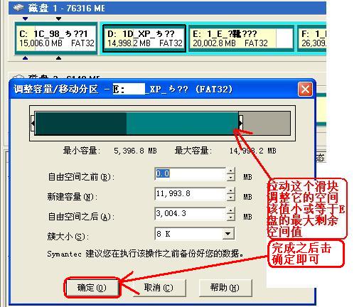 ”处的数字设置为“0”,保存设置后,D、E给C的空间就全收下了。在确认无误后,单主界面下角的“Apply”(应用)按钮并确认后,软件便开始了正式调整。在调整过程中,不能中断操作或重新启动电脑(包括不能断电)