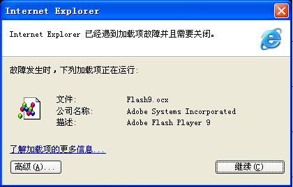 这个flash9播放器自打我安装以来,就频频遇到加载项故障。