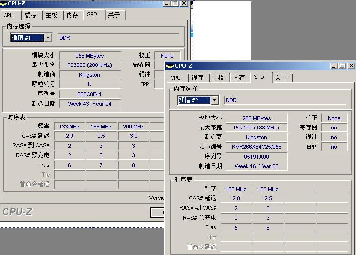 看看,你的内存条是什么规格的,去网上下载一个CPU-z 软件来,然后看一下。第一插口的是DDR400 第二者是DDR333