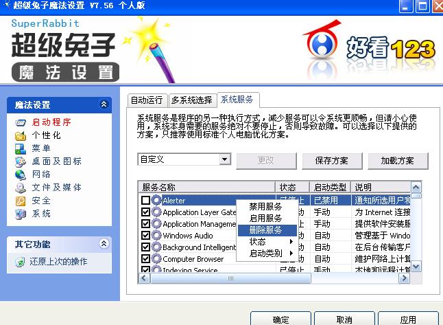 我中了一个毒,该删除的也删除了,但是服务里还是列着这个病毒服务。怎么能让这个家伙从服务列表里消失?