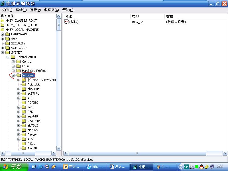 【終生學習的贴子】如果还是不行,那么就到注册表里删除了,在“开始”“运行”里输入REGEDIT,然后双击HKEY_LOCAL_MACHINE\SYSTEM\,,然后分别在ControlSet001和ControlSet002和CurrentControlSet里的Services 找到你图片上的那个名字,然后按右键删除,之后按F5来刷新一下即可,