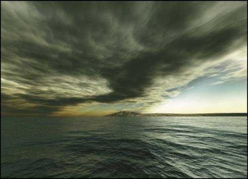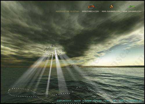 天我们来为一幅海天相接的照片添加从云层上散射下来的阳光效果,主要用到造型工具和模糊滤镜,步骤简单但效果很好。