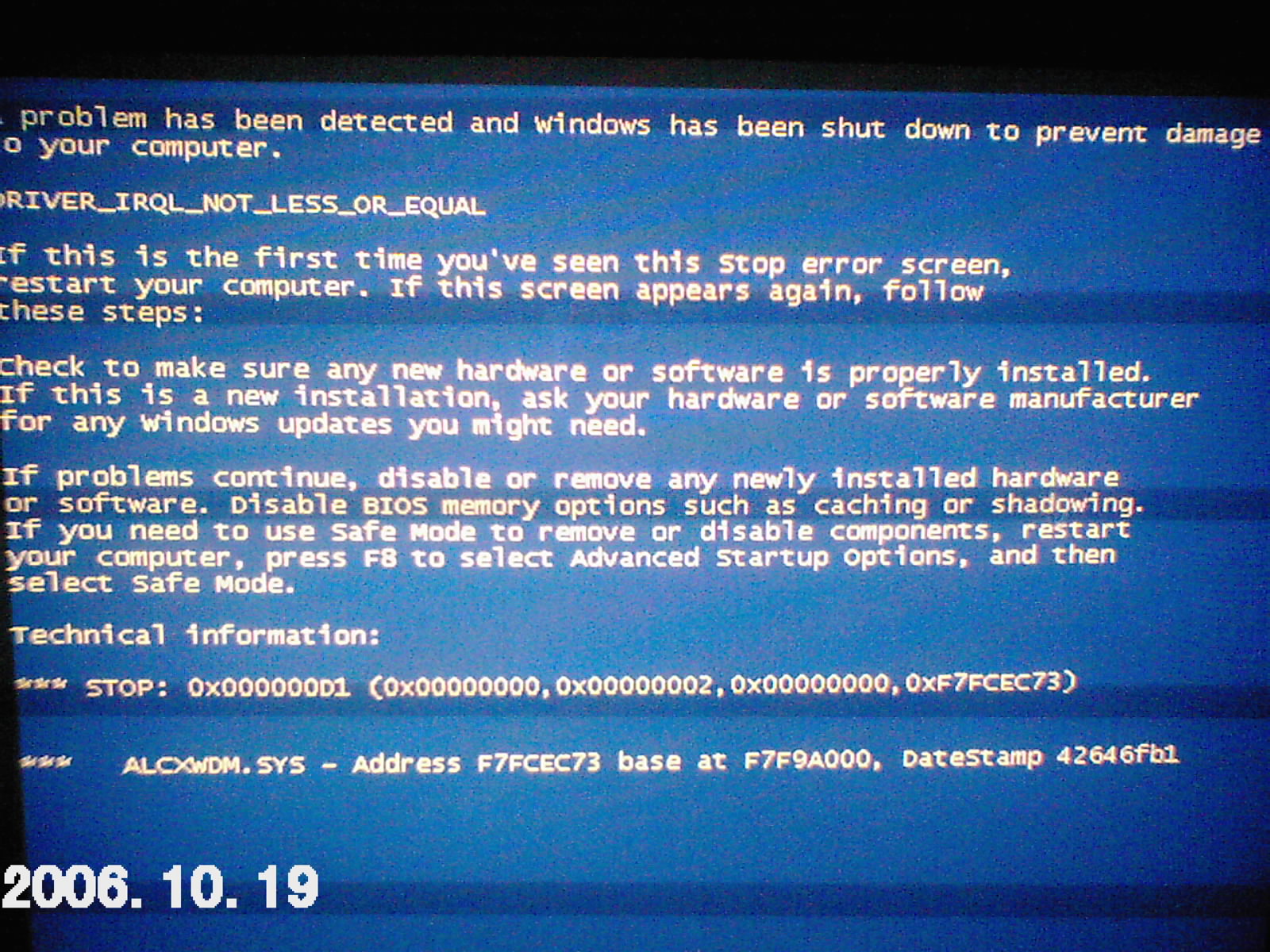 ALCXWDM.SYS-Address F7FCEC73 base at F7F9A000, Datestamp 42646fb1