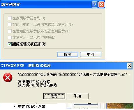 我用了通常的方法解决但是不行呀.相关截图如下.我把关闭进阶文字服务后按确定就会出现第二个图,电脑右下角依然没有输入法图标.请问该怎么解决?谢谢