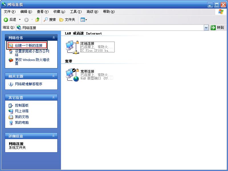 控制面板--网络和Internet连接--网络连接--创建一个新的连接。按照提示一步一步的就可以。