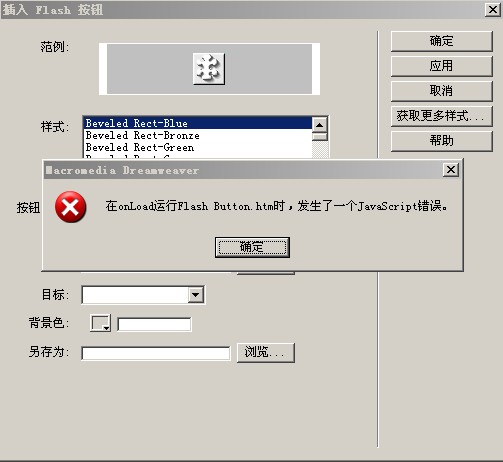 求住啊 我的dreamwever 中flash按扭总的出错误 ,我都从新下了个但还是有同样的问题啊