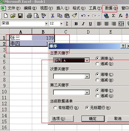 如果名字和数字在同一单元格中,EXCEL可能只按汉字的第一个字排序,你不是想以号码的大小来排吗??