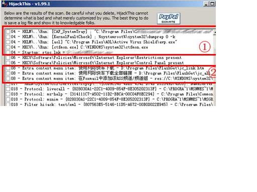 Hijackthis是一个很强大的浏览器修复工具,建议有兴趣的读者自行研究一下。Hijackthis的安全用法是,将其生成的信息,贴到论坛去,请知道的人来指点,哪些条目可以删除,哪些不可以删除。